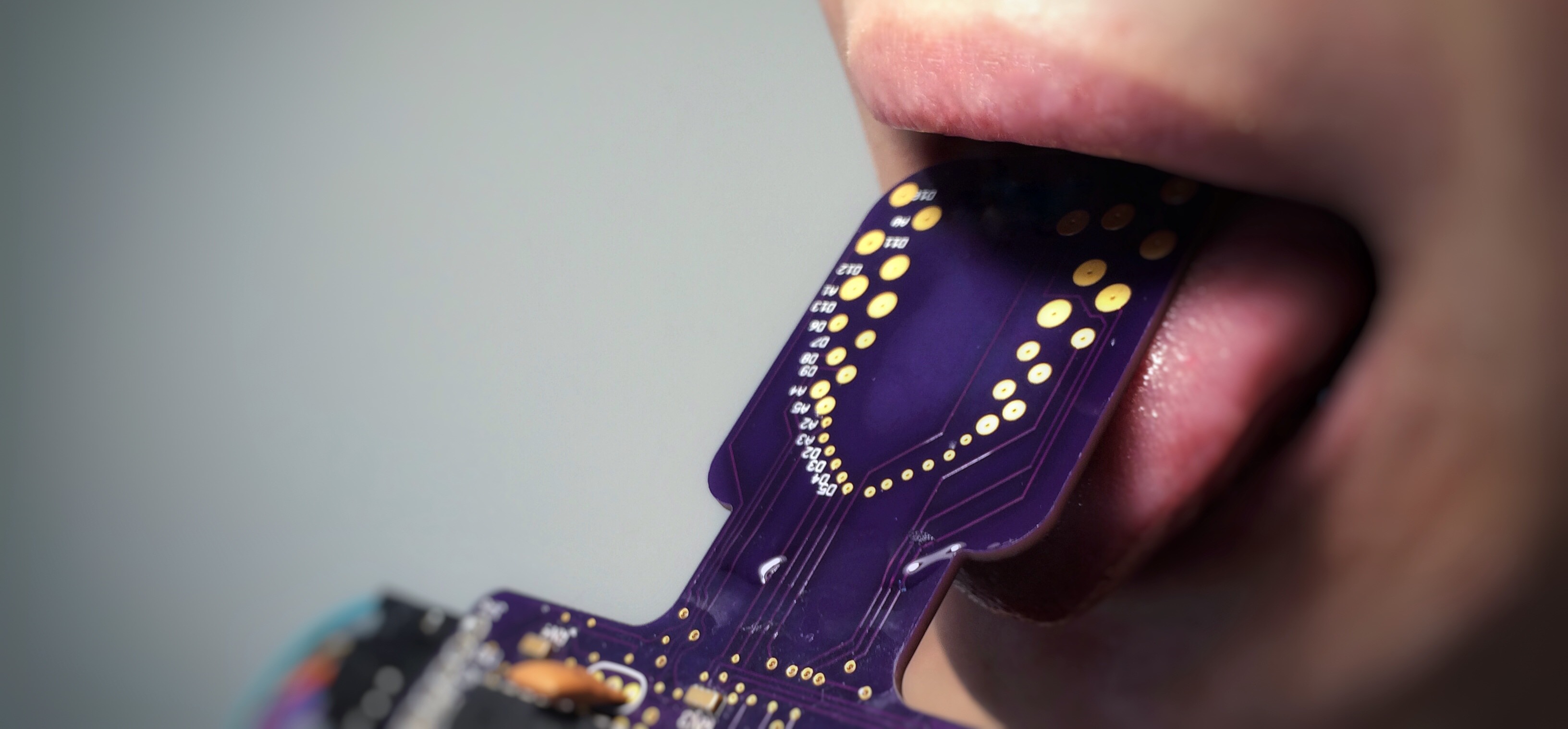 This work is an interactive installation situated between taste and touch. Working in collaboration with Sapien LLC, an arduino compatible tongue augmentation device was employed to output tiny patterned electrical currents on the tongue.