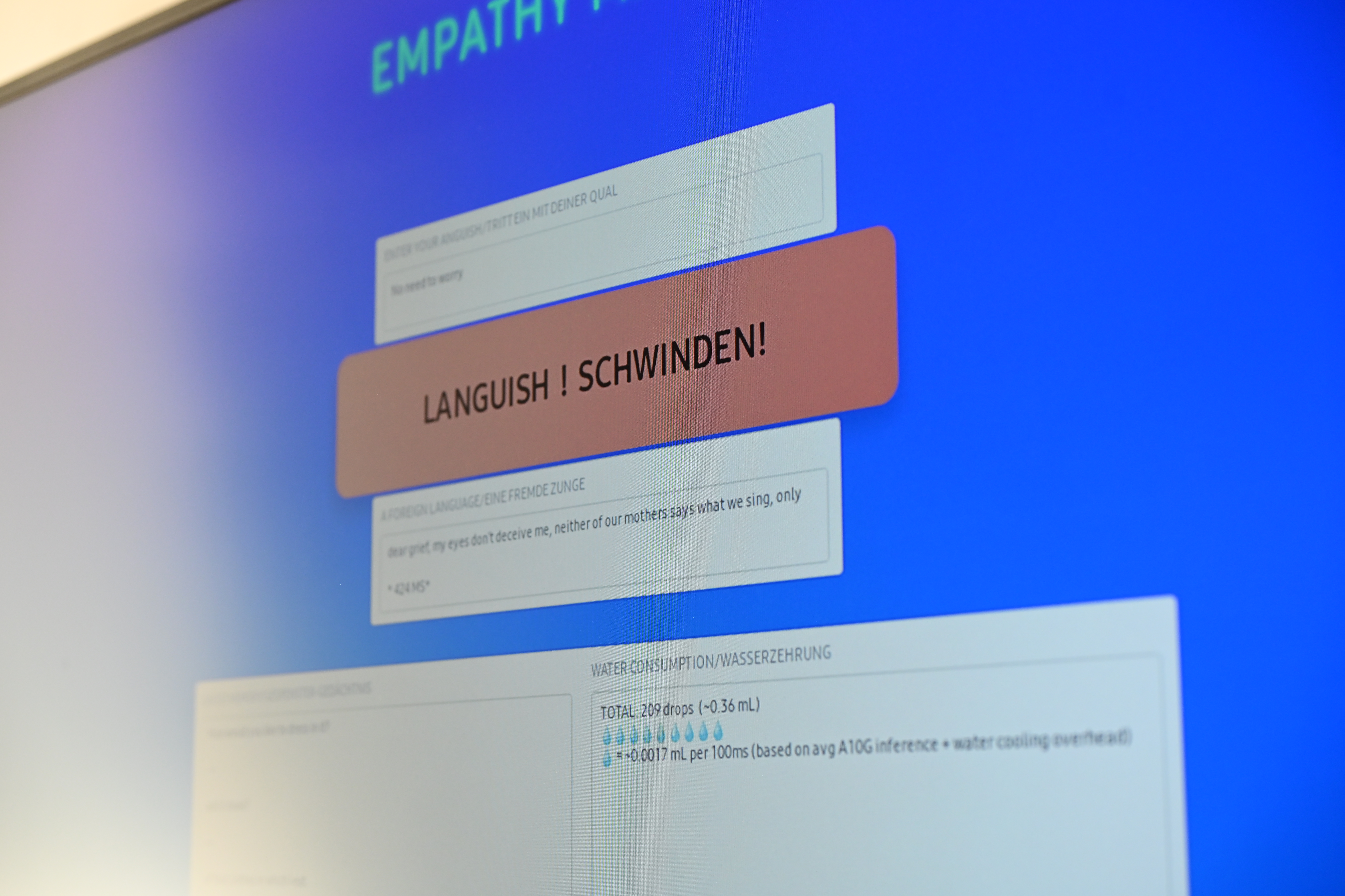 This project introduces a large language model (LLM) whose understanding of the world is based on differences between concepts rather than on an identification between them. We call this an empathy machine for it challenges the paradox that confines traditional empathy: the tension between difference and similarity. (And their constitutive paradoxes: self/other, interior/exterior, subject/object, mind/body, visible/invisible, life/death, light/dark, masculine/feminine…etc) Studies have shown that empathy is more fluid when the other resembles ourselves, and more solid when they appear different. This approach stems from a critical observation: empathy often fosters a tribal mentality, as noted by psychologist Paul Bloom and further theorized by Saidiya Hartman, who suggests that this limit of empathy is a feature and not a bug. Most people can only empathize with others that they can imagine themselves into. In order to empathize, one displaces the other to feel their pain in a form that is legible to oneself. Unsurprisingly, this legibility hinges upon sameness. Hartman critiques that empathy requires the negation and obliteration of the other into a phantasy of ourselves.